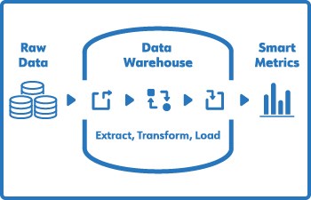 A data warehouse cleans, standardizes, and structures your data so it can deliver faster, more accurate, and more meaningful reports. How a data warehouse does this is through a process called ETL – for Extract, Transform, and Load: