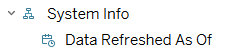 The Data Refreshed As Of attribute (in the System Info hierarchy) is the computer clock's datetime captured in the underlying SQL data warehouse during its most recent refresh. It was then passed along, with the rest of the data, when this data source extract was refreshed.