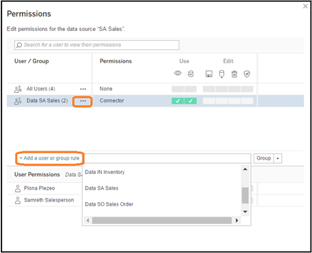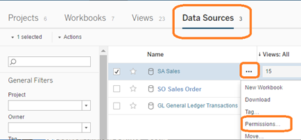 Users need permission before they will be able to use the data in the data source. Permissions can be set as the data source is being published, or later from within DataSelf Web Server.