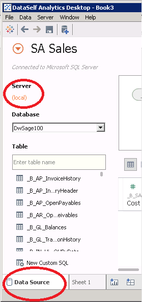 - In DataSelf Desktop, go to the Data Source tab (lower left).
