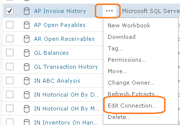OR you can add the impersonation user after publishing, from within the Web Server. From the Content menu > Data Sources tab. Click the ellipsis (...) and Edit Connection.