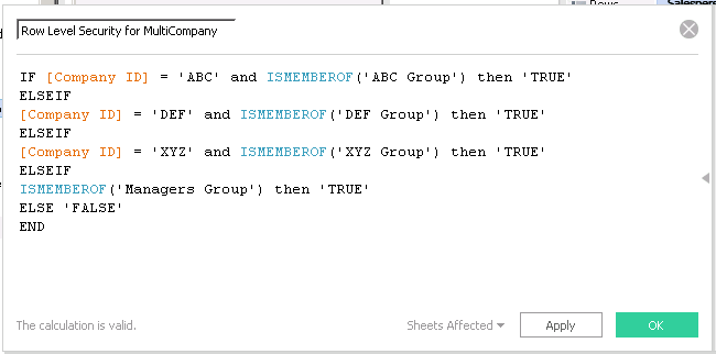 In DataSelf Desktop, utilize the ISMEMBEROF() function that identifies the current user's group memberships.