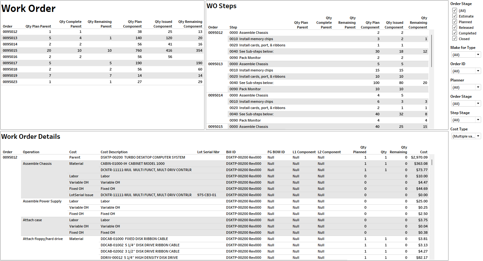 DataSelf Analytics for Manufacturing provides dashboard views that are easy to configure so you see your data your way. From any dashboard, you can go to the underlying ERP data with just one click.